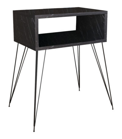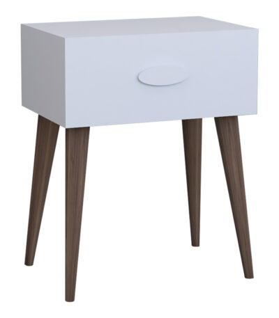 Naida bedside table in white shade – black metal legs 40x30x59cm