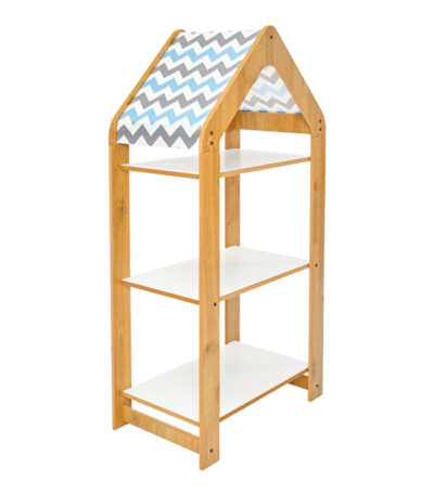 Montessori shelf Zoilen I white-natural-blue mdf 50x30x100cm
