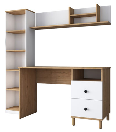 Work desk-shelf unit Goldie white-natural 160x50x161.8cm