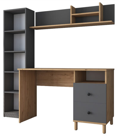 Work desk-shelf unit Goldie anthracite-natural 160x50x161.8cm