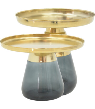 Coffee tables Kunlo Inart 2 pieces set gold chrome-black glass