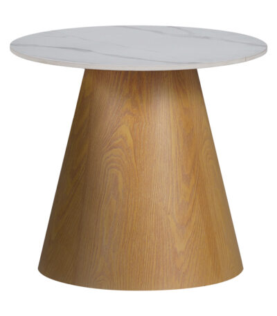 Side table Kirkene Inart white marble color sintered stone and white metal D50x50cm