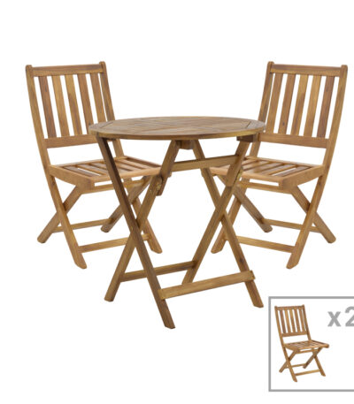 Elijie-Carpuva dining table set of 3 folding natural solid acacia wood D70x74cm
