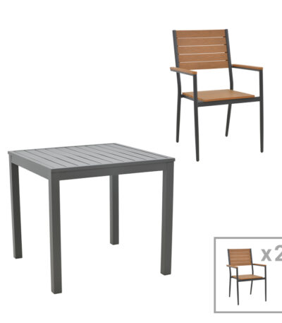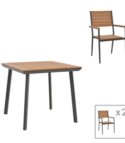 Kliton-Vitality dining table set of 3 anthracite aluminum and plywood in a natural shade 80x80x74cm