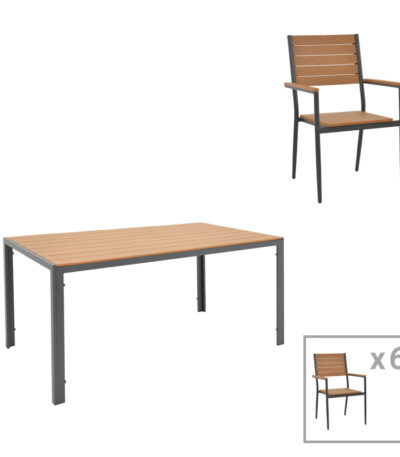 Dining table Nares-Vitality A set of 7 anthracite aluminum and plywood in natural color 140x80x72.5cm