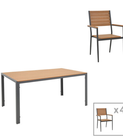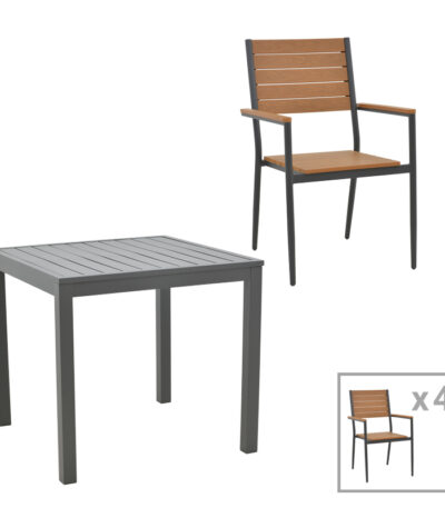 Kliton-Vitality dining table set of 5 anthracite aluminum and plywood in a natural shade 80x80x74cm