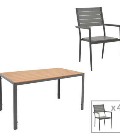Dining table Nares-Uplift set of 5 anthracite aluminum and plywood in natural color 140x80x72.5cm